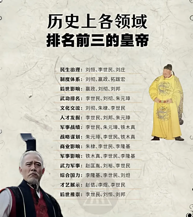 歷史上各領(lǐng)域排名前三的皇帝,你覺得呢?
