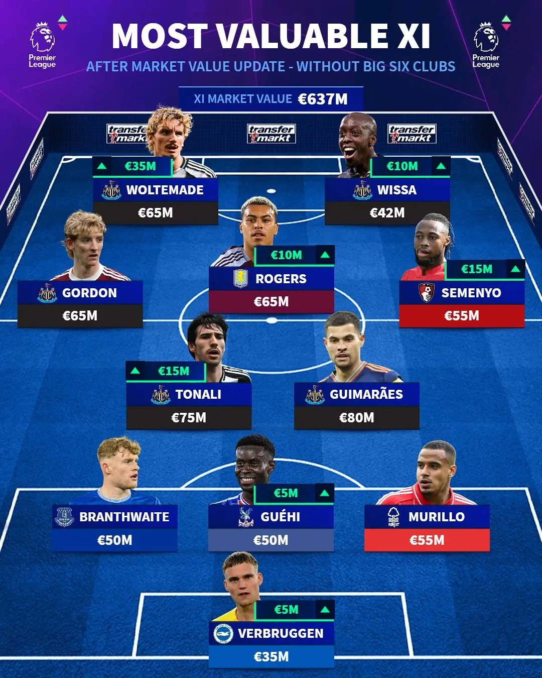 [流言板]英超非Big6球員最貴陣容:紐卡五人入選,格伊、塞梅約在列