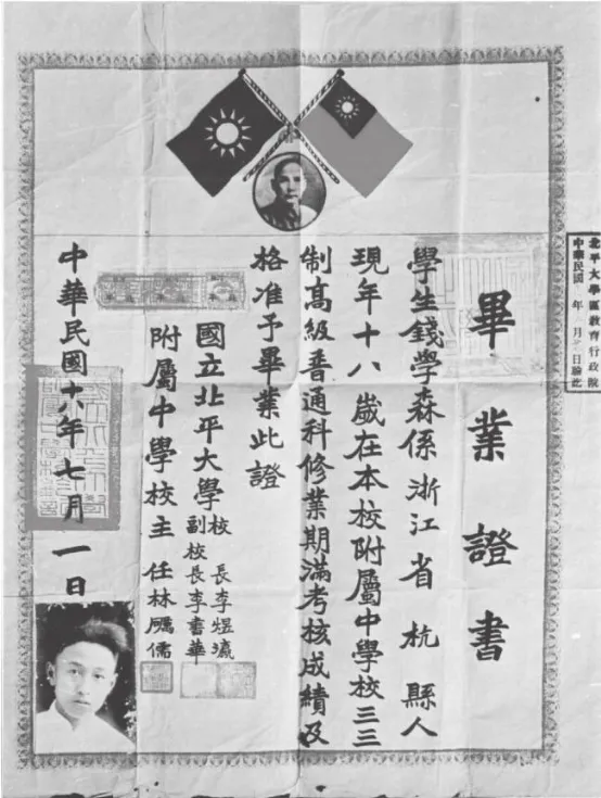 錢學(xué)森(右一),母親章蘭娟(右二),姨媽