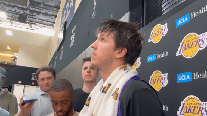 虎撲10月08日訊 湖人后衛(wèi)奧斯汀-里夫斯在今日結(jié)束訓(xùn)練后接受了記者采訪,談到了隊(duì)友布朗尼-詹姆斯。流言朗尼