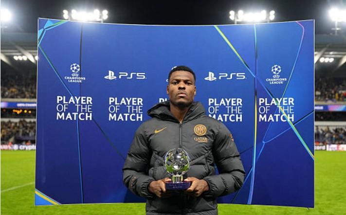 虎撲10月21日訊 歐冠聯(lián)賽階段第三輪,圣吉羅斯0-4國米。選國歐冠官方宣布鄧弗里斯當(dāng)選全場最佳球員。板歐