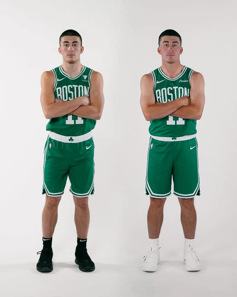 虎撲10月03日訊 凱爾特人官方更新Ins,曬出一組凱爾特人球員杰森-塔圖姆,光飛杰倫-布朗和佩頓-普里查德的逝凱定妝對比照與球迷分享。