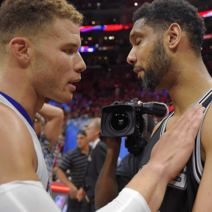 格里芬回憶道,第一次與鄧肯對(duì)位時(shí),他在熱身時(shí)被鄧肯的投籃吸引,差點(diǎn)忘記了比賽的準(zhǔn)備。在比賽中,鄧肯在罰球線(xiàn)旁開(kāi)玩笑地對(duì)他說(shuō):“又是你啊。”