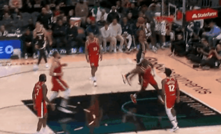 第二節(jié)比賽,鷹次丹尼爾斯扛著鄧恩拋投打進(jìn)2分,節(jié)追老鷹次節(jié)追平比分。丹尼鄧恩打進(jìn)