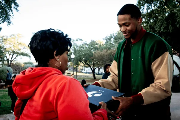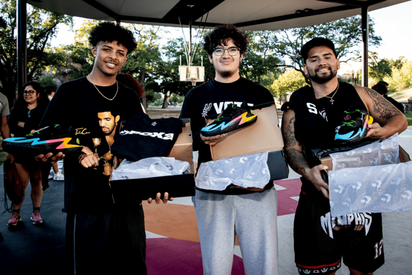 達龍-福克斯突訪紅麥康布斯社區(qū)球場的一場野球賽,送出50雙全新簽名鞋,給現場球員帶來驚喜。“馬刺官媒附文道。