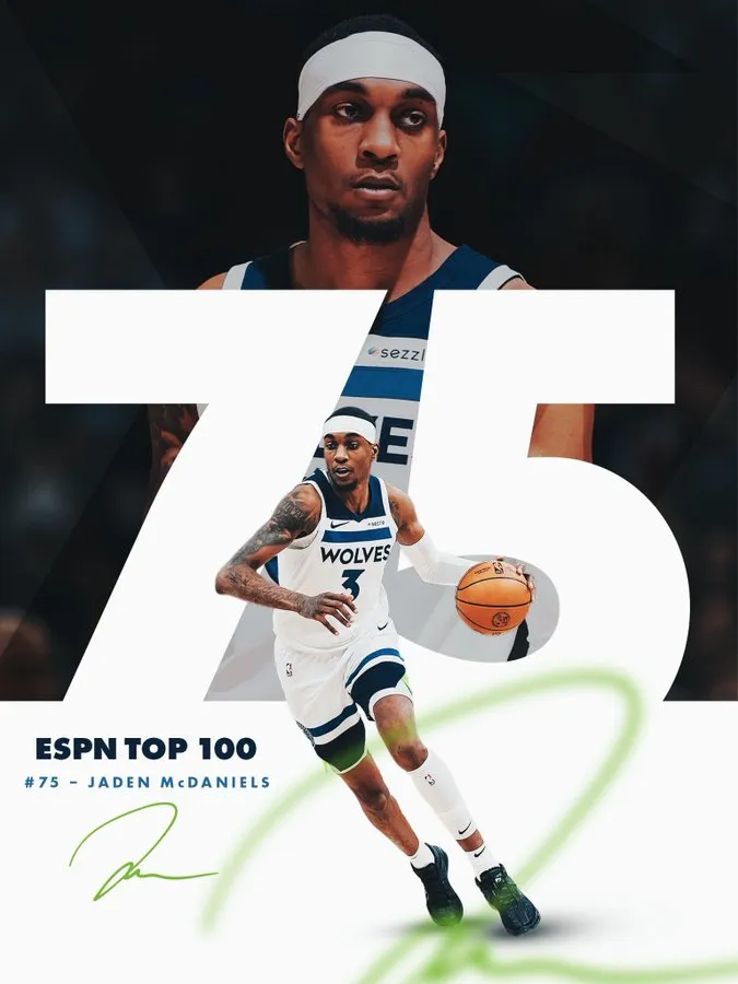 ESPN之前公布了最新一期的排名百大榜單,其中: