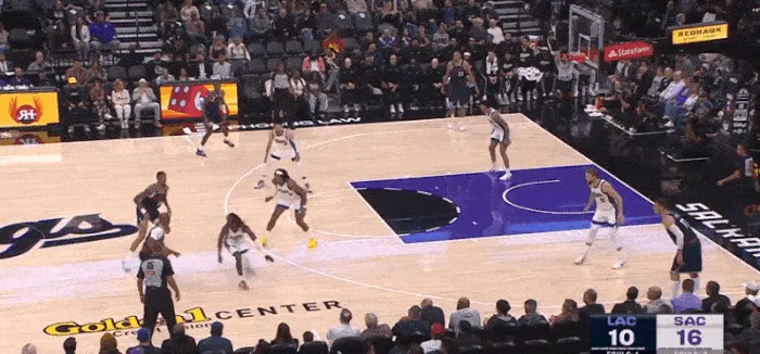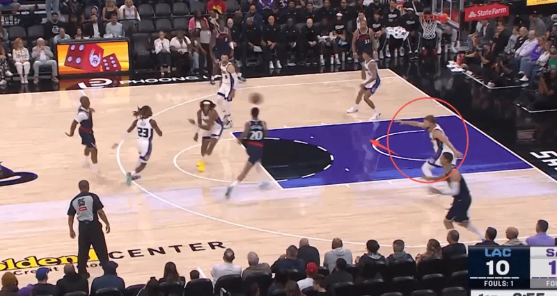 今天保羅助攻大洛的這個回合就很典型,這也是國王他全場第一次助攻。