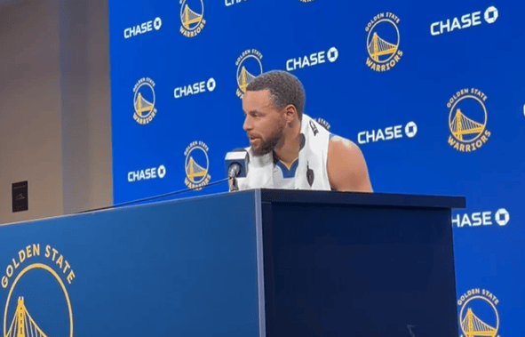 賽后,庫里接受了采訪,談到了常規(guī)賽揭幕戰(zhàn)。
