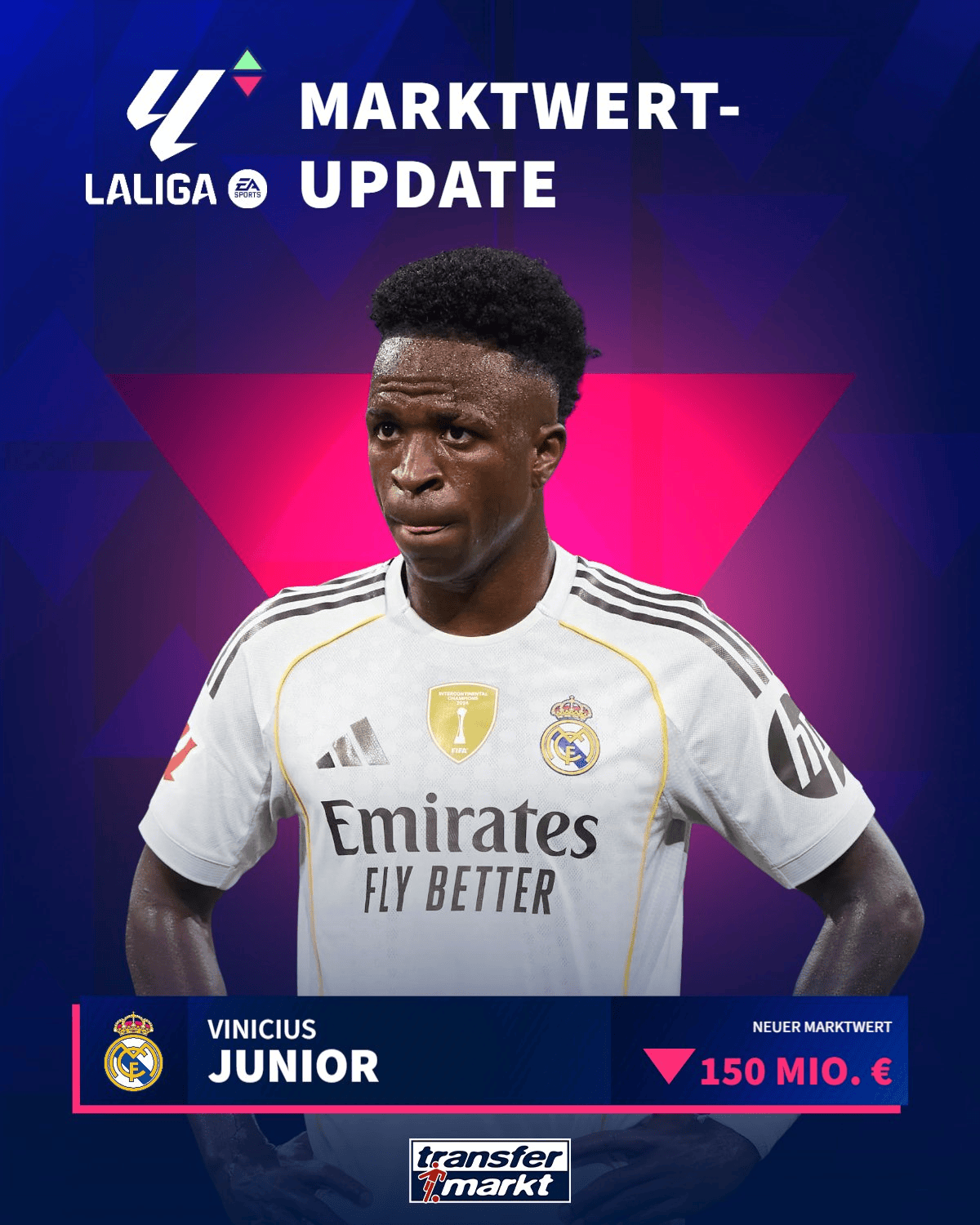 自從他未能成功贏得金球獎(jiǎng)以來(lái),維尼修斯在公眾中的聲望大幅下滑。在球場(chǎng)上,尤其是上賽季下半段,人們也清楚地看到,圍繞他個(gè)人的爭(zhēng)議在一定程度上限制了他的競(jìng)技表現(xiàn)。隨著教練更換,球隊(duì)內(nèi)部的等級(jí)秩序也發(fā)生了變化——阿隆索明顯以姆巴佩為核心,而維尼修斯只能扮演次要角色。再加上馬斯坦托諾和居萊爾等年輕天才球員也在競(jìng)爭(zhēng)上場(chǎng)時(shí)間,維尼修斯在公眾與俱樂(lè)部?jī)?nèi)部的地位進(jìn)一步下降。這導(dǎo)致了他盡管仍然擁有極高身價(jià),但市場(chǎng)價(jià)值被下調(diào)。