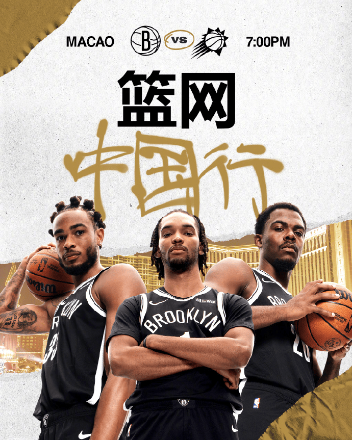虎撲10月12日訊 今晚NBA中國(guó)賽,籃網(wǎng)將繼續(xù)對(duì)陣太陽(yáng)。海報(bào)