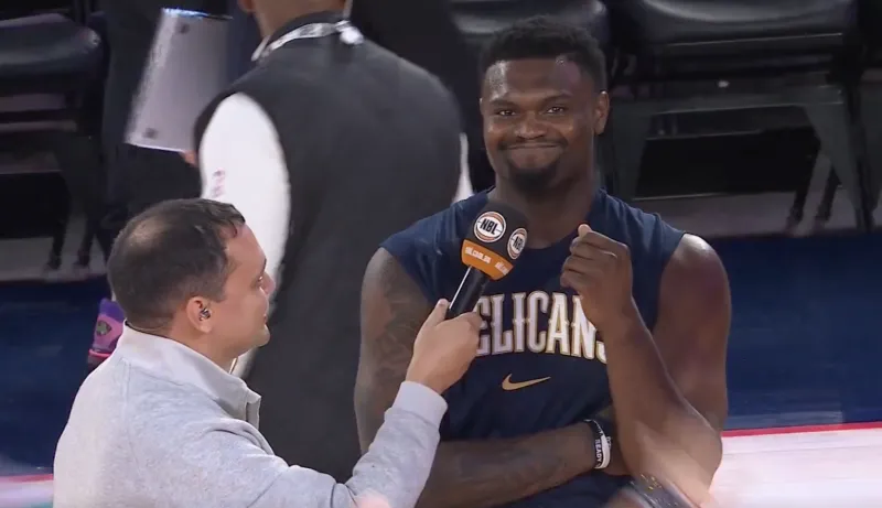 賽后,喊們鵜鶘球員蔡恩-威廉森接受媒體采訪,打趣談到了相關(guān)話題。受歡