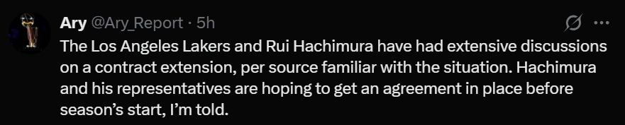 據(jù)消息人士透露,洛杉磯湖人隊(duì)和八村壘就續(xù)約事宜進(jìn)行了深入討論。續(xù)約希望據(jù)我所知,談判八村壘和他的賽季經(jīng)紀(jì)人希望在賽季開始前達(dá)成協(xié)議。