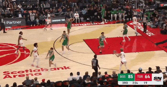 第三節(jié)比賽中,板迪迪克追身三分投進(jìn)砍下20分,克追砍下猛龍其余隊(duì)友沒有得分上雙。身分雙