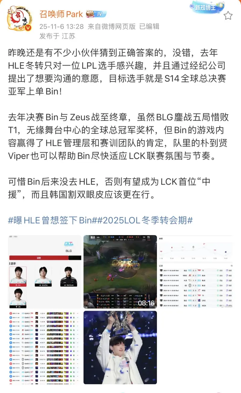 去年HLE冬轉(zhuǎn)只對一位LPL選手感興趣,并且通過經(jīng)紀(jì)公司提出了想要溝通的沒談意愿,目標(biāo)選手就是熱議人物S14全球總決賽亞軍上單Bin!
