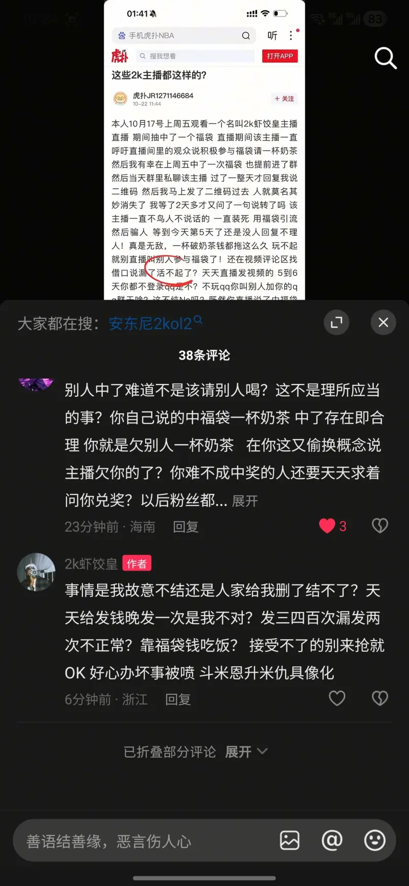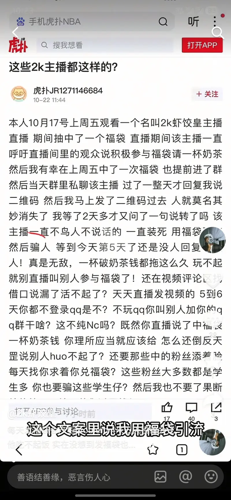 因?yàn)橹疤悠毓饬舜藳]素質(zhì)的主播2k蝦餃皇!這主播就開始發(fā)視頻賣慘洗自己,然后一些不知事實(shí)的粉絲開始為他說話,編造一些什么斗米恩升米仇具象化的謊話把自己描述的很正義,請問我第一次中福袋,而且你還沒給,我粉絲燈牌還是7級多,我沒要你一分錢怎么就變斗米恩升斗米仇了?哈哈哈你對我有啥恩了?這踏苗的是沒讀過書嗎?名言啥意思都理解不明白隨便套用,此主播心里到底是有多黑暗,自己做錯(cuò)的事 他能顛倒黑白和別人在評論區(qū)互罵 隔一個(gè)星期隔一個(gè)月不理人 如果你說他不對就是不行 他就會嘲諷你4塊奶茶都喝不起了?吃拼好飯中毒了?暗示和嘲諷別人窮,請問你就是這么對待你的粉絲的?粉絲花抖幣給你刷燈牌 花時(shí)間待直播間里給你漲人氣不是錢?你發(fā)啥給我了?到底是誰對誰有恩啊?你還偷換概念倒打一耙了?我只是中了問你兌換福袋 你5天多都不理人 如果我不發(fā)這條帖子出來 估計(jì)和之前那個(gè)兄弟一樣一個(gè)月都沒人理是不?上百人參與的福袋 然后直播時(shí)一直叫別人參與 我還以為是啥多大金額奶茶呢這都要耍賴 我也是第一次中 然后看有一些粉絲中了他隔一個(gè)月都不理別人 有些粉絲天天追著屁股問,他才給別人發(fā)了4塊,第一見4塊奶茶錢的哈哈哈 隔著打發(fā)要飯的 這小丑。他還說4塊錢他會發(fā)不起跑路?哈哈哈,這家伙就是利用這些概念就是故意拖時(shí)間不理人,讓那些中獎(jiǎng)?wù)咦约翰荒蜔┎缓靡馑继蛑樢恢比ブ鲃?dòng)找他然后放棄,然后他就省錢了,一個(gè)月這樣漏幾十個(gè) 也省百把塊了這小子陰的很。天天嘲諷歧視別人吃拼好飯 活不起 你到底是多有錢喜歡裝?住幾百萬的房子?拿出來給我看看你的實(shí)力。