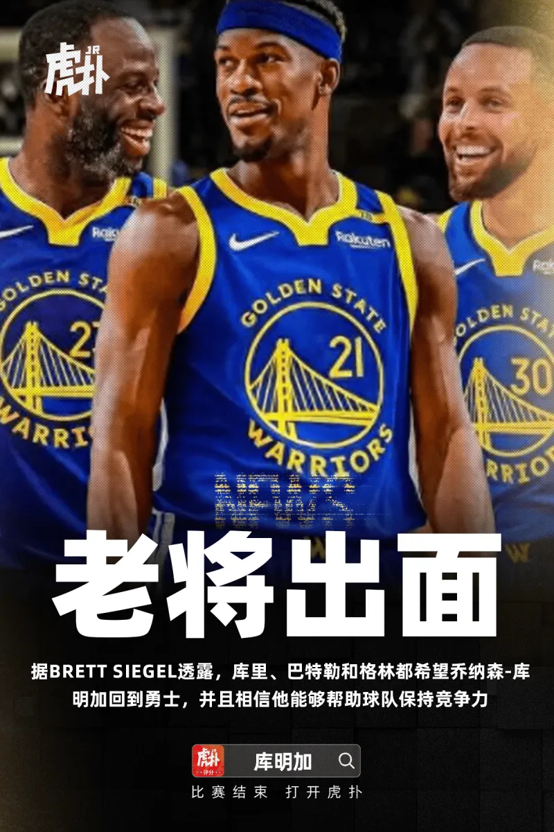 虎撲09月20日訊 根據(jù)Brett Siegel的消息,斯蒂芬-庫里、記庫加留吉米-巴特勒和德雷蒙德-格林都希望喬納森-庫明加回到勇士,特勒并且相信他能夠幫助球隊保持競爭力。格林