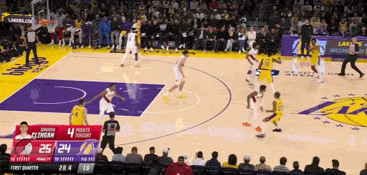 布朗尼負(fù)責(zé)運(yùn)球過(guò)半場(chǎng),組織半場(chǎng)進(jìn)攻,靠自布朗尼將球交給艾頓。上場(chǎng)A水