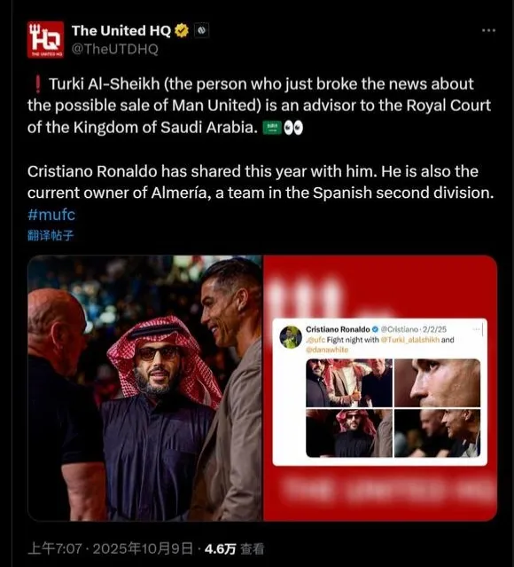 圖爾基?阿爾謝赫(剛剛爆料曼聯(lián)可能出售消息的人)是沙特皇家法院的顧問。