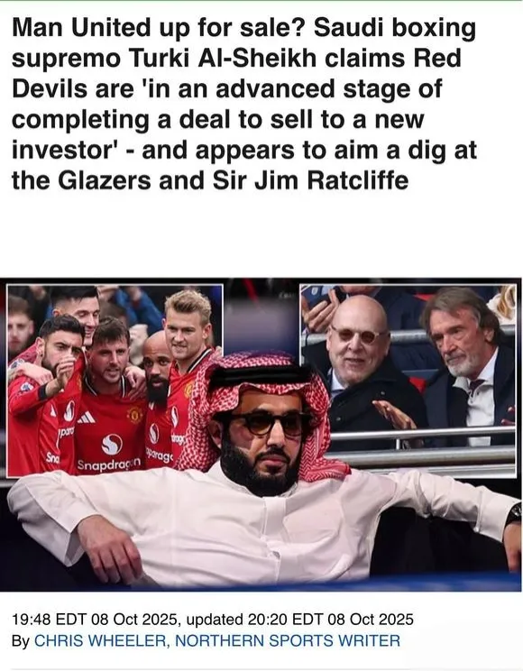 郵報(bào) Chris Wheeler:沙特文體巨頭 Turki Al-Sheikh 在社交媒體上聲稱,曼聯(lián)俱樂部接近被出售給新的板沙被出投資者,目前正處于達(dá)成協(xié)議的特皇投資深入階段。