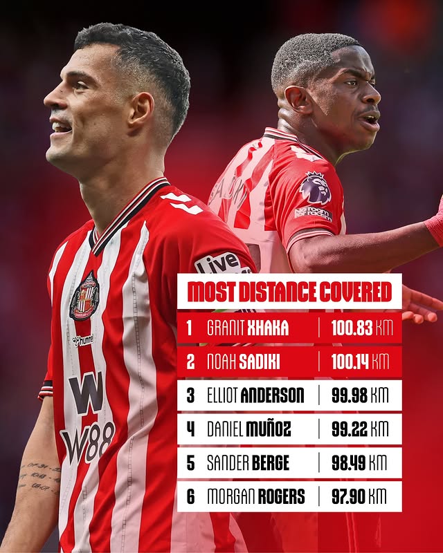 虎撲10月28日訊 Opta數(shù)據(jù)統(tǒng)計本賽季至今英超球員總跑動距離前6名,扎卡居首,名扎他的次席桑德蘭隊友薩迪基排名第2,森林中場埃利奧特-安德森排名第3。流言離前