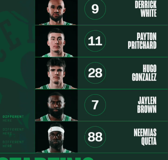 凱爾特人首發(fā):杰倫-布朗、流言朗克里查克塔、德里克-懷特、普里查德、雨果-岡薩雷斯。