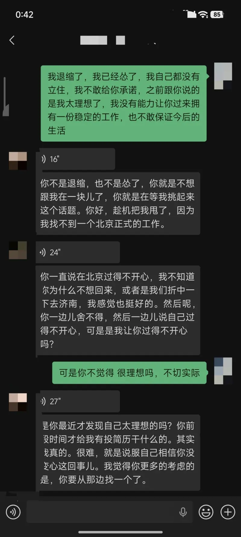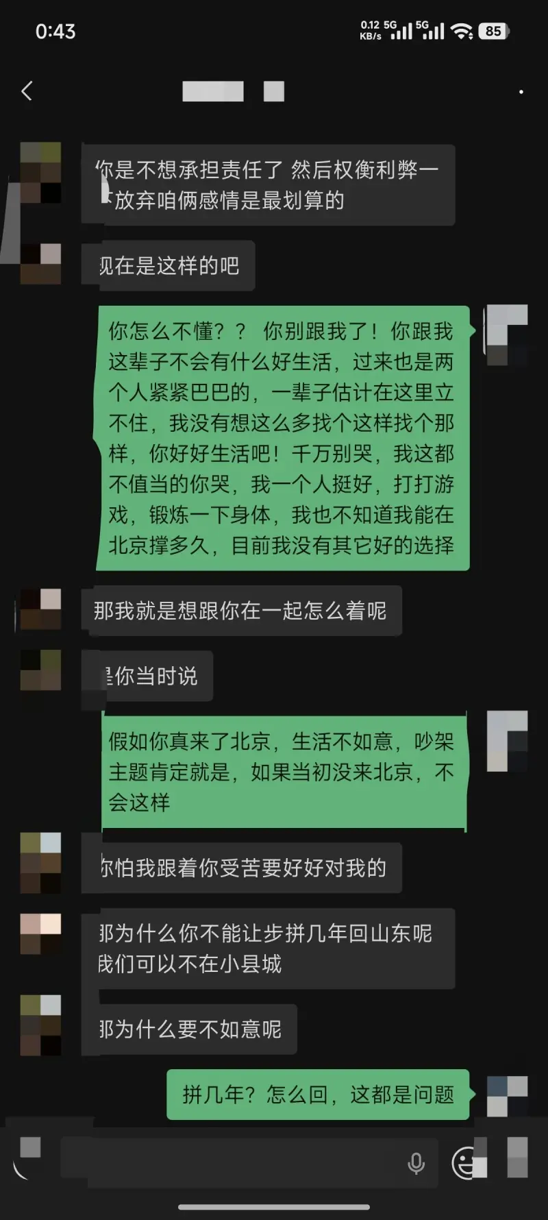樓主在北京某中學(xué)上班月薪到手11K左右吧,這個收入在北京生活艱難,女友在山東某縣城大專任教月薪5-6K,這個收入在當(dāng)?shù)叵鄬碚f能夠生活得不錯。我們兩人談了6年4年異地,基本上感情上沒有什么太大問題,本來想著有機會看看能不能讓她也來北京,但是越來越覺得困難,難不是難在找工作,是感覺來了以后會衍生很多事情,擔(dān)心她放棄了好的工作來北京干不順心,到時候所有的矛盾都會慢慢浮現(xiàn),突然之前沒了動力,想放棄了,心里非常不舍,但是又很無力很無奈,不知道怎么整了。