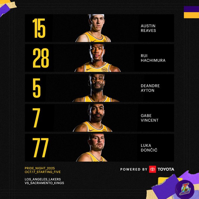 [流言板]湖人首發(fā):東契奇、文森特、里夫斯、八村壘、艾頓