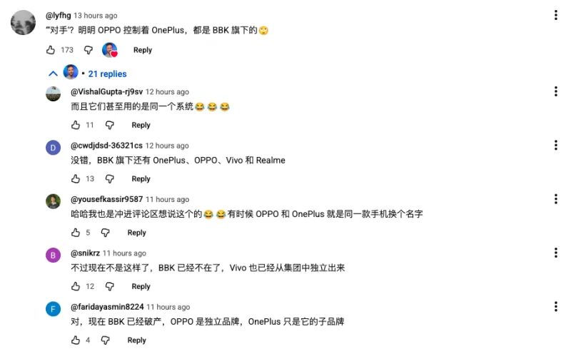大家在討論 OPPO 和 OnePlus 的關(guān)系(BBK指步步高)