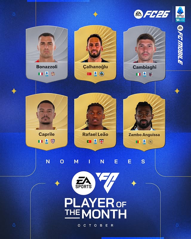 虎撲10月31日訊 意甲官方公布10月份最佳球員候選名單: