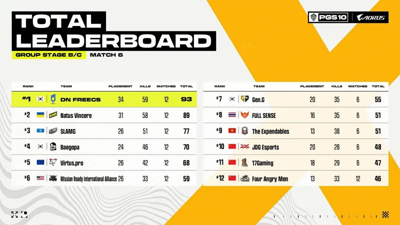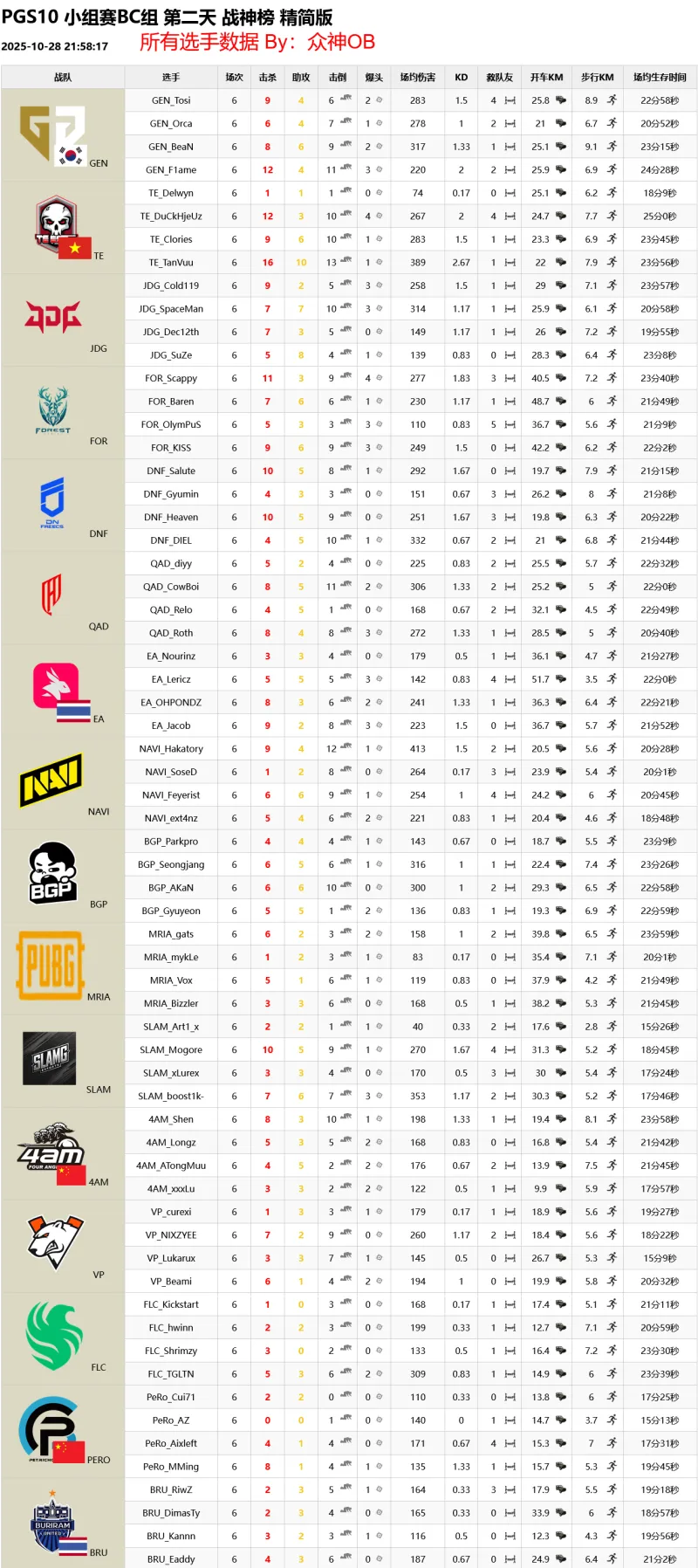 PGS10小組賽第二天 BC組 積分榜&戰(zhàn)神榜