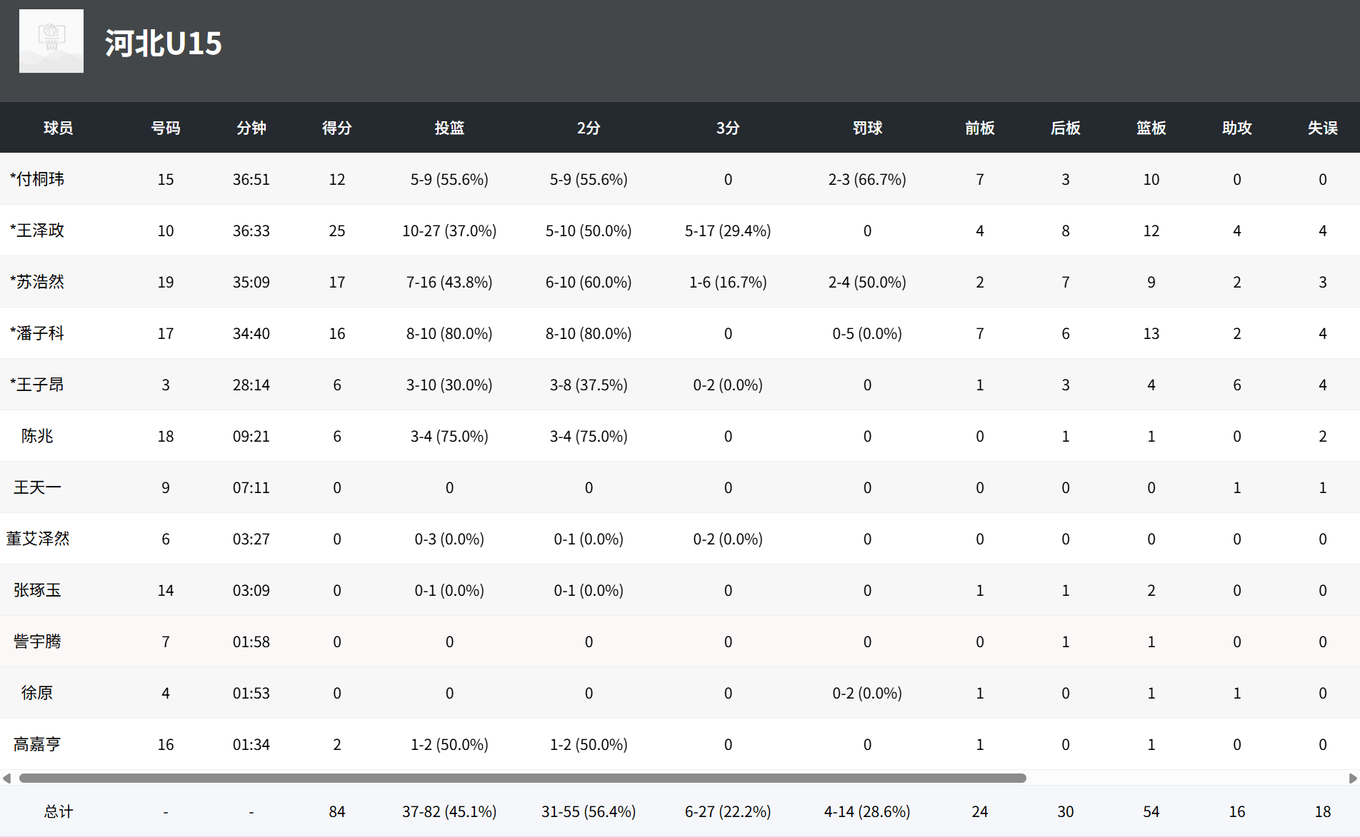 虎撲10月14日訊 U15全國(guó)賽,遼寧U15男籃66-84不敵河北U15男籃。賽王