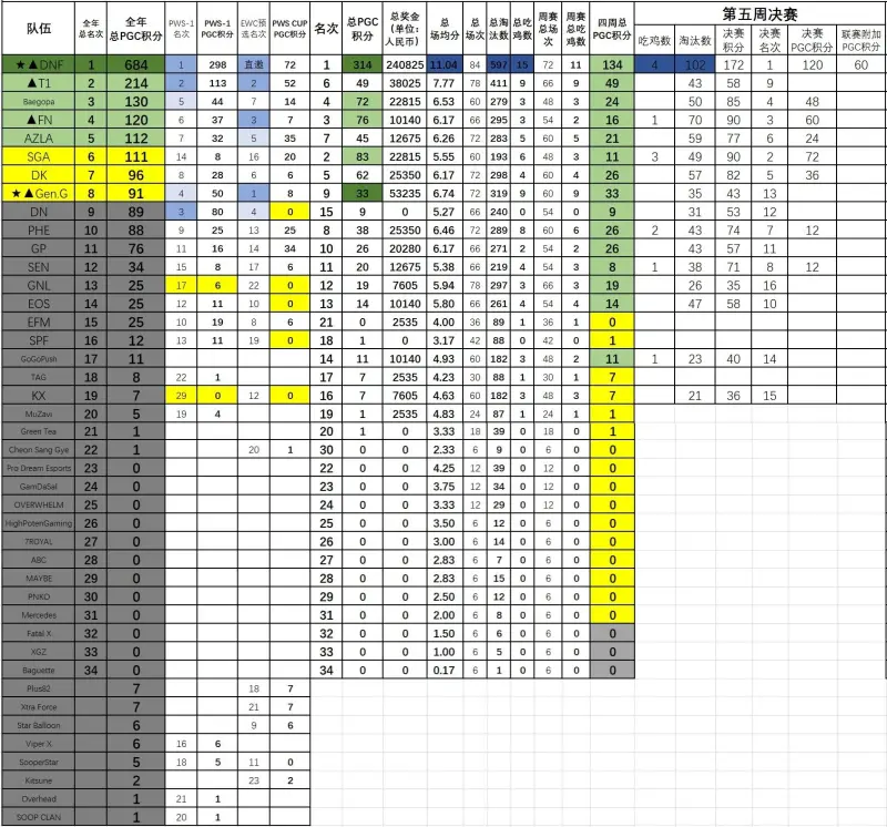 DNF兩天決賽狂吃四雞、爆坎172分,一騎絕塵拿下決賽第一,再加上此前四周周賽周周第一,全年總PGC積分爆增至684分!要知道一支戰(zhàn)隊(duì)理論上全年可獲得PGC積分也就790分,DNF獲得了理論最高分的87%,這在PWS每比賽日計(jì)PGC積分的賽制下,真的相當(dāng)恐怖,基本上全年聯(lián)賽沒(méi)有一天是拉的。獎(jiǎng)金方面,繼PWS-1拿到53.4%的總獎(jiǎng)金后,PWS-2再度獨(dú)享45.7%的總獎(jiǎng)金!