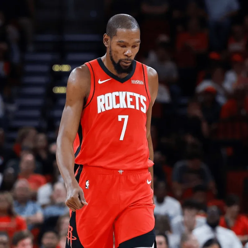 賽后,火箭記者Bradeaux更新社媒,統(tǒng)計了凱文-杜蘭特開賽前4場比賽的場均數(shù)據(jù):