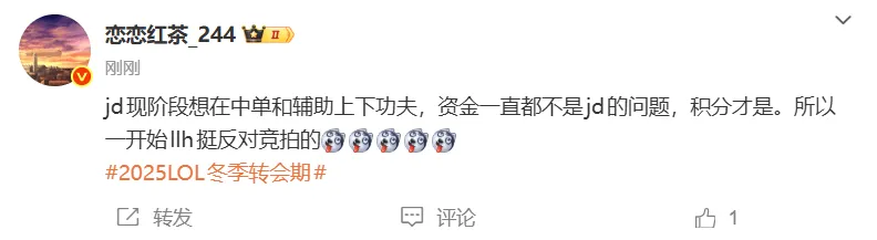 [JR熱議]微博爆料:JDG想在中單和輔助位置上加大投入由孤獨的熱議