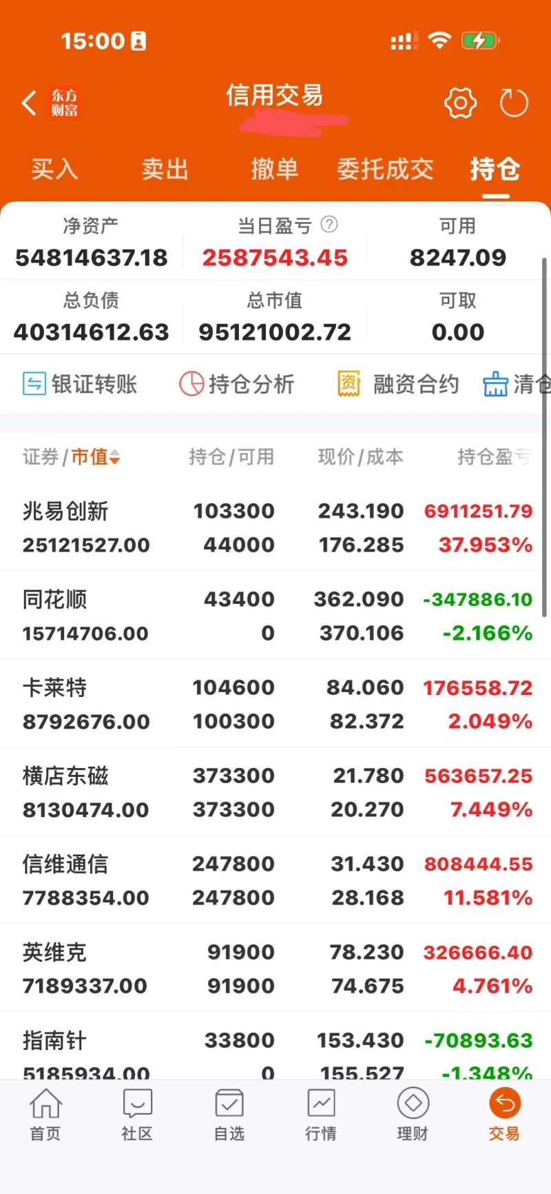 同花順虧了,但是知行合一,今天買了差不多5000萬同花順,明天破4000不是券商就是寧德,賭券商帶隊。