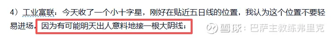4)工業(yè)富聯(lián):昨天的判斷不是神棍式的瞎猜,因?yàn)槲乙?jiàn)過(guò)很多類似的圖形,高位連續(xù)幾個(gè)小十字星縮量調(diào)整,讓散戶放松警惕,然后突然接一根大陰線;富聯(lián)這種股,一般要做個(gè)雙頭才會(huì)徹底倒下,不過(guò)在此之前會(huì)爆殺融資盤(pán);