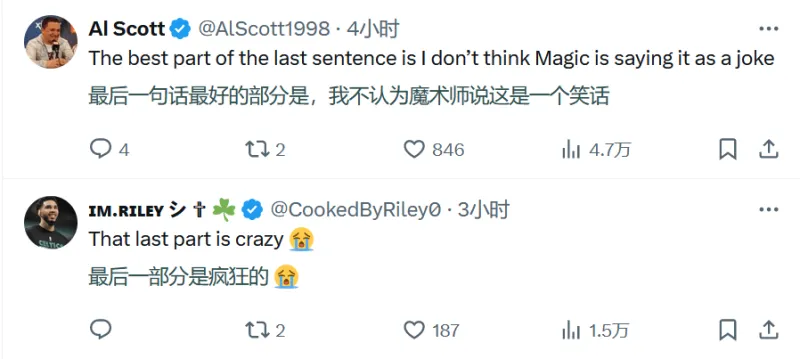 “最后一句話最好的部分是,我不認為魔術(shù)師的話是一個笑話!”