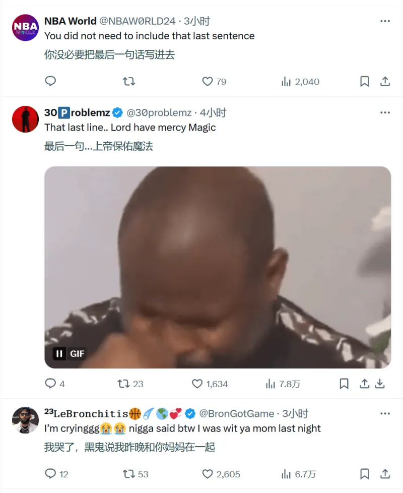 魔術(shù)師言論引爭議!魔術(shù)面曝稱昨晚與庫里母親玩得開心 兩人親切擁抱畫面曝光由正經(jīng)本人 發(fā)表在籃球資訊 https://bbs.hupu.com/502