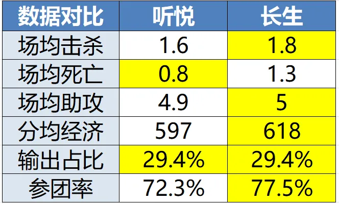 長(zhǎng)生這邊,作為AG超玩會(huì)這支王朝戰(zhàn)隊(duì)的中軸,在數(shù)據(jù)上比聽(tīng)悅還要夸張。場(chǎng)均擊殺、分均經(jīng)濟(jì)、場(chǎng)均助攻三項(xiàng)數(shù)據(jù)中路第一,輸出占比、參團(tuán)率兩項(xiàng)數(shù)據(jù)中路第二,只有場(chǎng)均死亡這一項(xiàng)數(shù)據(jù)遜于聽(tīng)悅。成都AG超玩會(huì)的封神之路從長(zhǎng)生王昭君拿一凍開(kāi)始,這么多個(gè)賽季走來(lái),長(zhǎng)生的穩(wěn)定性在隊(duì)內(nèi)都稱得上是數(shù)一數(shù)二。上一場(chǎng)對(duì)位流浪,這場(chǎng)對(duì)位聽(tīng)悅,都會(huì)是相當(dāng)精彩的頂級(jí)中路對(duì)決。