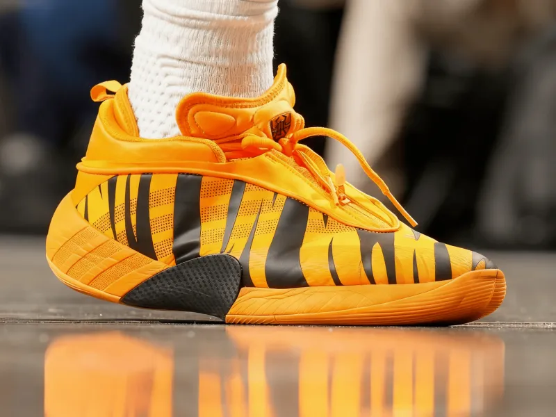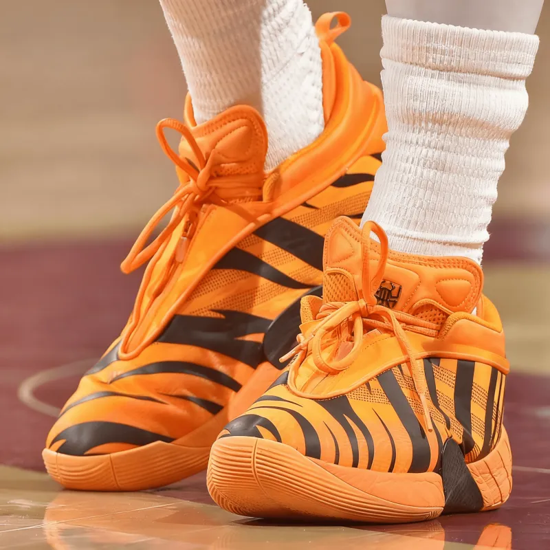 比賽中,米切爾上腳虎紋配色adidas DON issue.7 PE。