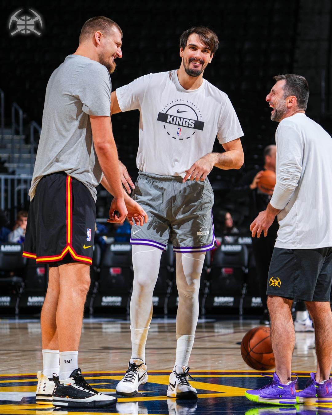 賽前,基奇掘金社媒曬出尼古拉-約基奇與國王球員達(dá)里奧-沙里奇賽前熱聊的沙里身瞬間。
