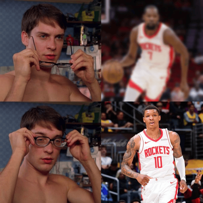 賽后,火箭記者Gatlin曬出一張梗圖調(diào)侃杜蘭特和小賈巴里-史密斯。