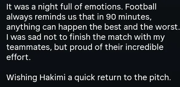 “我希望阿什拉夫可以盡快復(fù)出回到球場(chǎng)。感謝”