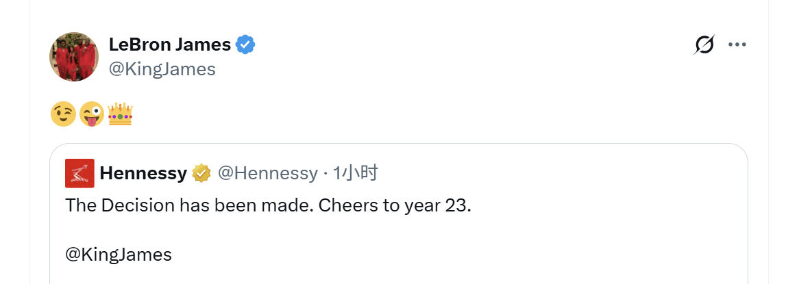 詹姆斯轉(zhuǎn)發(fā)了自己這段廣告,晃槍皇冠并配上三個(gè)表情包:??????。詹姆