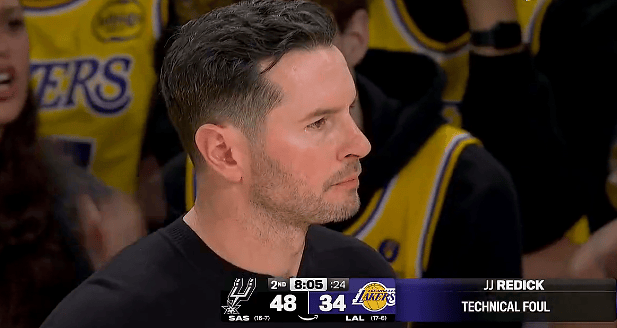 第二節(jié)比賽中,規(guī)失雷迪克挑戰(zhàn)犯規(guī)失敗,敗抱被吹抱怨裁判又被吹技術(shù)犯規(guī)。怨裁