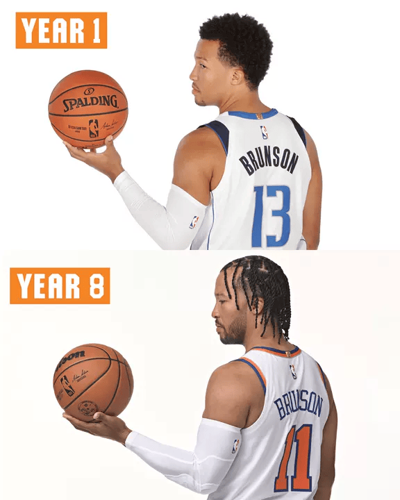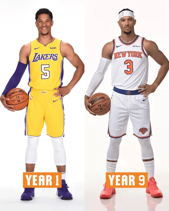 虎撲09月26日訊 今日,紐約尼克斯官方更新X,苒尼日照曬出球隊杰倫-布倫森、曬大賽季卡爾-安東尼-唐斯、主力米卡爾-布里奇斯、新秀約什-哈特四名主力球員生涯第一年和本賽季媒體日的年本對比照片,并配文: