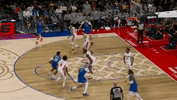 NBA常規(guī)賽,獨(dú)行俠對陣活塞的拉塞比賽正在進(jìn)行中。