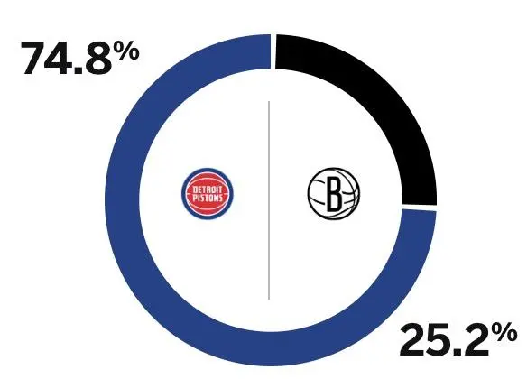 [流言板]ESPN預(yù)測(cè)明日籃網(wǎng)vs活塞:籃網(wǎng)勝率25.2% 活塞勝率74.8%