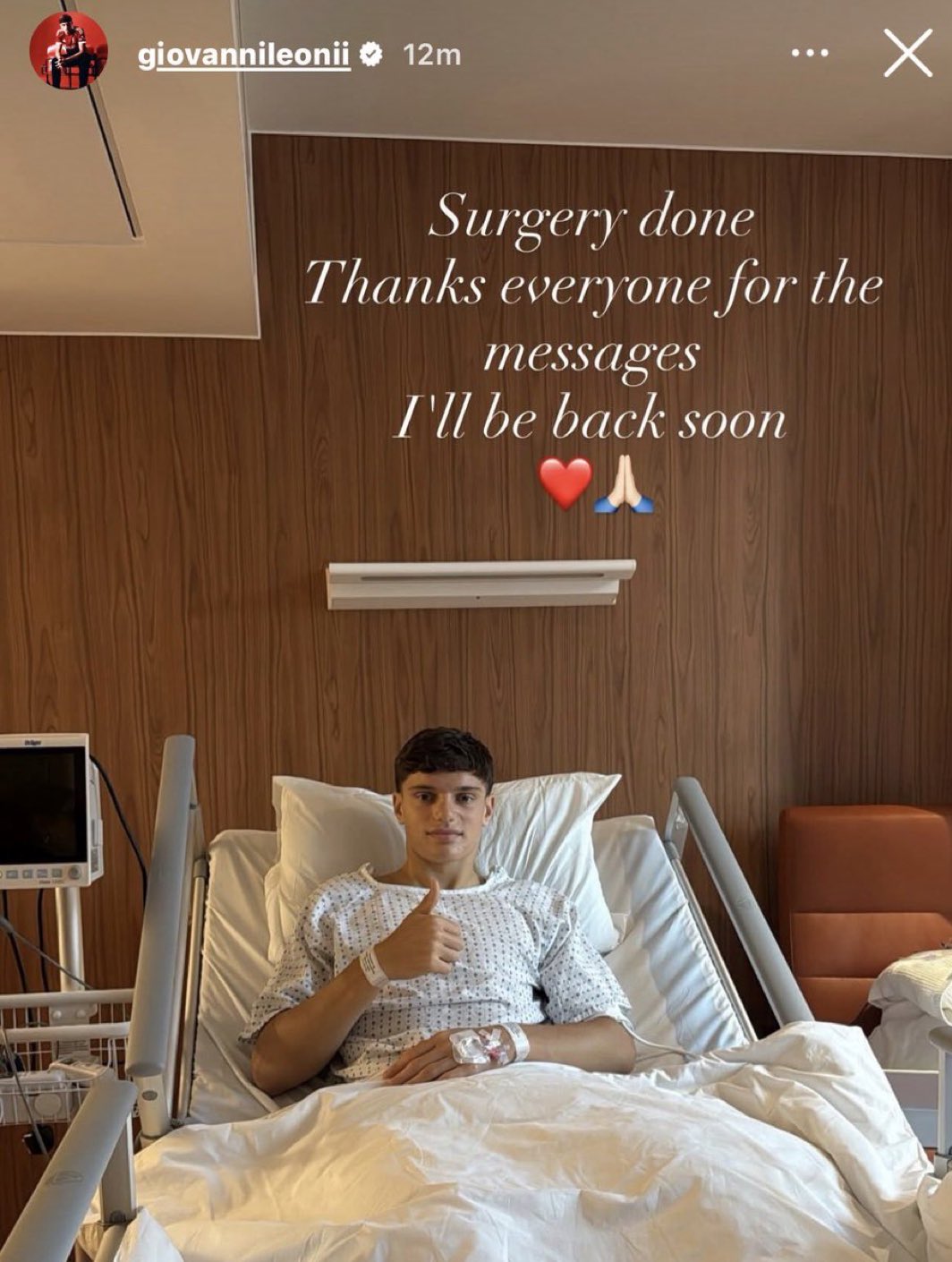 萊奧尼發(fā)文寫到:“手術(shù)成功,感謝所有人對我的支持和慰問,我會盡快回到賽場。”