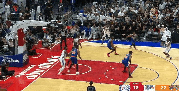 虎撲10月05日訊 NBA季前賽,76人對(duì)陣尼克斯的板狀比賽正在進(jìn)行中。